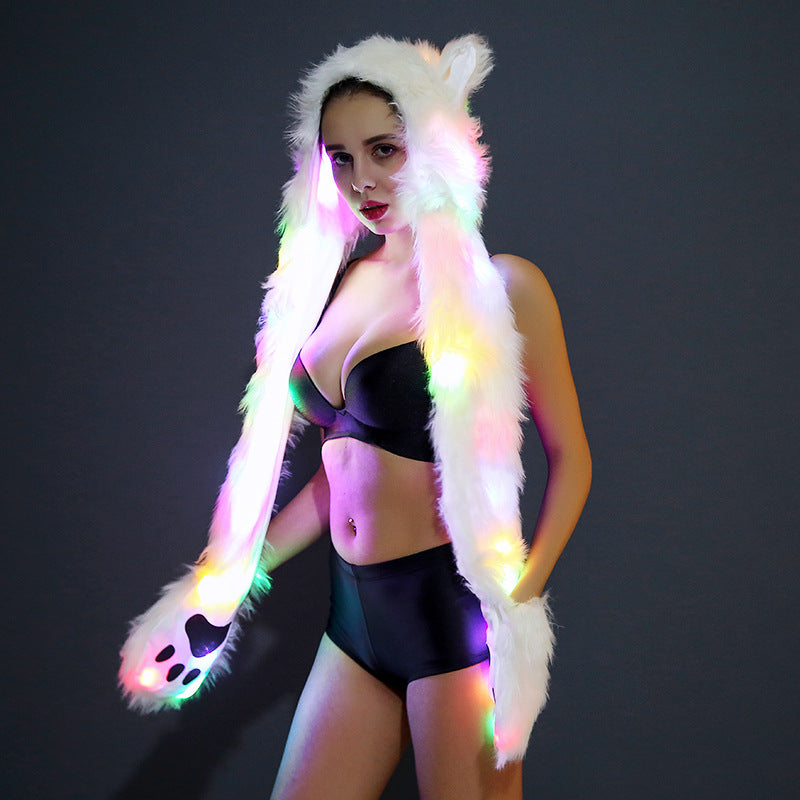 Light up your nights with this enchanting LED Glowing Paw Accessory: Perfect for femboys, this cozy hood features soft, white faux fur with vibrant, multicolored lights. The adorable paw design adds a playful touch, making it an ideal accessory for parties, festivals, or just for fun. Stay warm and stylish while shining bright!