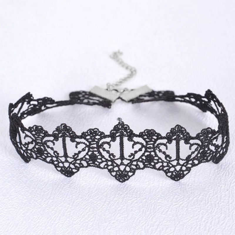 Introducing Femboy Republics Crown Choker: Featuring a series of ornate, crown-like motifs that are symmetrically patterned along its length. The lacework is intricate and detailed, with each "crown" comprising of a central peak flanked by curving, symmetrical designs that resemble the ornamental spires and flourishes of a classic tiara.