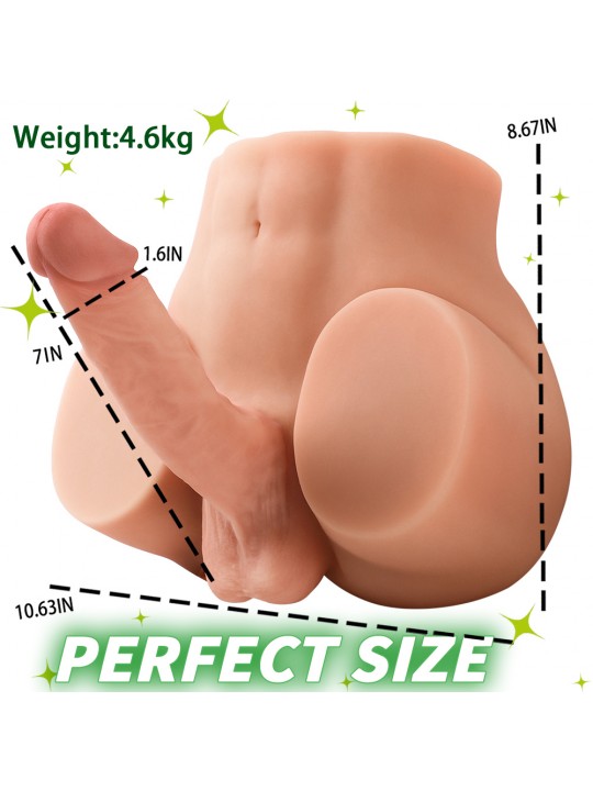 In addition, the male torso boasts a lifelike asshole that offers a tight and textured channel for a sensational masturbating experience. The combination of the erect penis and the inviting asshole provides a versatile and immersive pleasure experience for solo play or intimate pleasure with a partner.