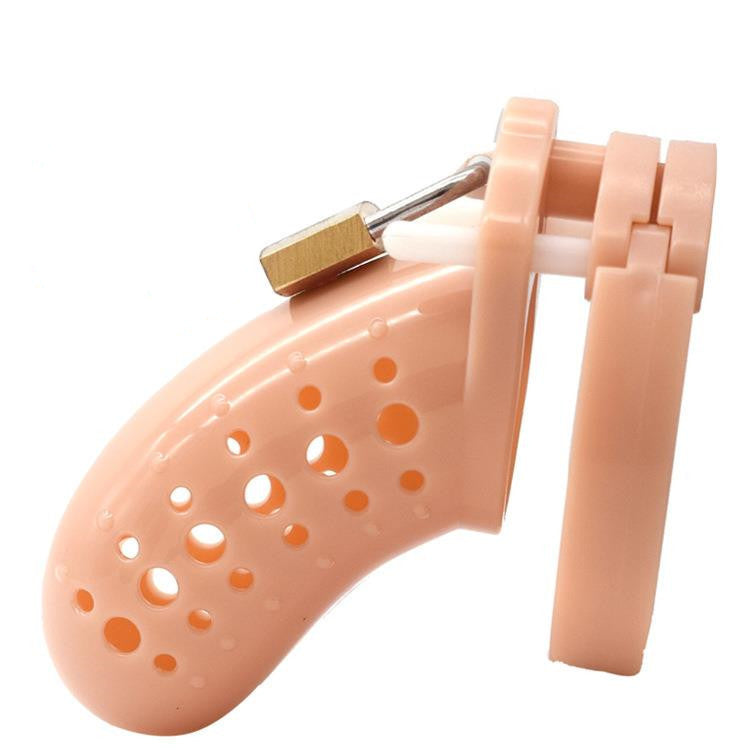 Vibrant restraint for vivid fantasies: This playful chastity lock offers both lightness and security in a durable plastic construction. Its design features a series of ventilation holes for comfort and hygiene, while the sturdy locking mechanism ensures reliability. Available in a spectrum of colors to suit any preference, this device adds a personalized touch to the practice of chastity, combining functionality with a dash of fun.