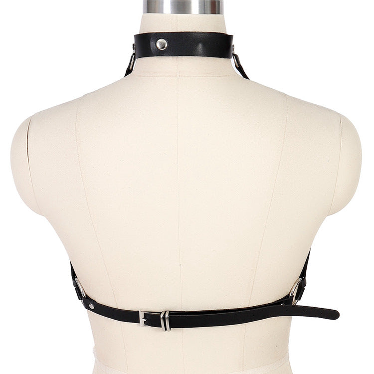 Redefine your style, harness perfection: The harness straps crisscross over the chest and torso, creating an eye-catching geometric pattern that draws attention and commands the spotlight. Perfect for pairing with high-waisted pants, skirts, or shorts, our Punk Strap Harness Top adds an edgy touch to any outfit. Wear it alone for a daring and confident look, or layer it over a fitted shirt or dress for added dimension and texture