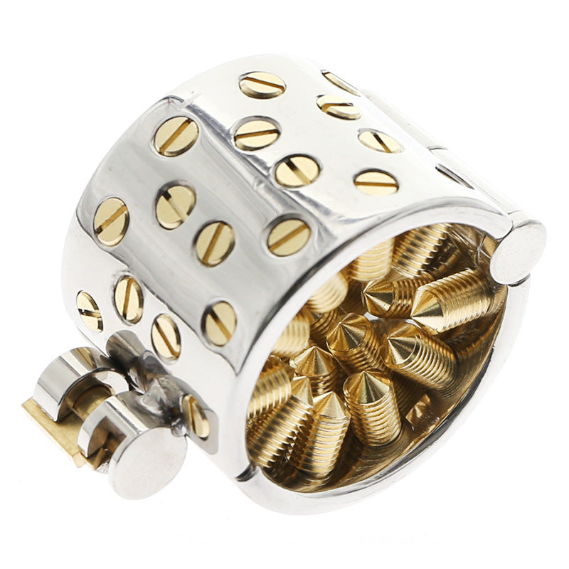 Engineered like a weapon, worn like a crown: When you need more weight, more stretch, and more intensity, the Elite-XL Spiked Scrotum Ring delivers. Built wider and with larger spikes for serious players, each spike is precision-engineered to grip harder and press deeper. Crafted from premium stainless steel with a smooth, punishing fit, this ring isn’t just worn — it’s conquered. Push your limits. Hold nothing back.