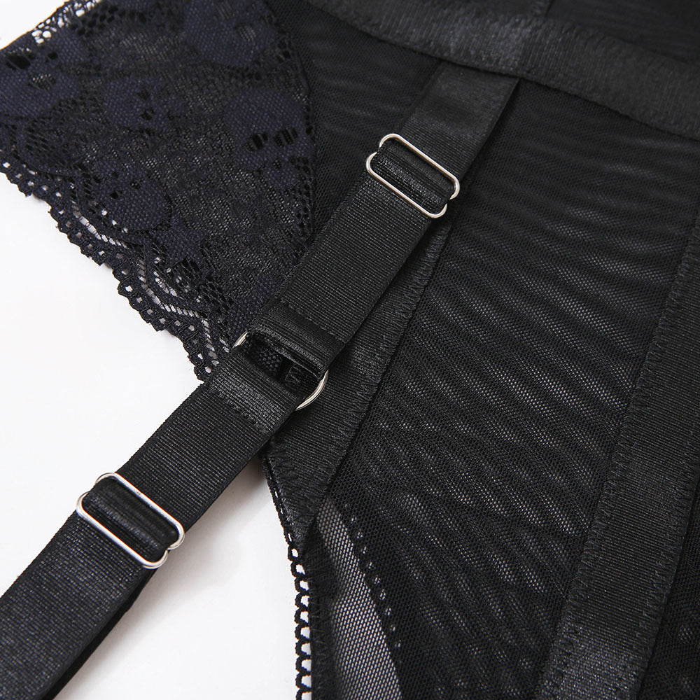 Own the night with unapologetic confidence: The Temptress Bodysuit Collection blends delicate lace with bold strapping for a look that commands attention. Designed for all body types, this piece features underwire support, adjustable straps, and attached garters — built for those who love to mix elegance with edge. Whether you’re dressing up for someone or just for yourself, this bodysuit is about power, play, and self-expression.