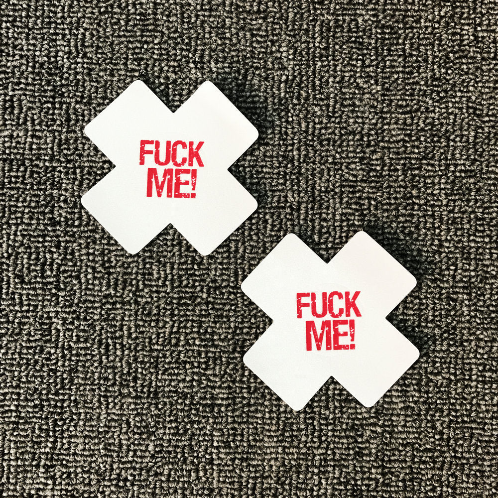 Elevate the art of seduction: Introducing our Luminous Provocation X Nipple Covers. These audaciously designed covers not only carry a bold statement but also glow in the dark, ensuring you command attention even with the lights turned low. Featuring a daring X shape and emboldened with the provocative message "fuck me," these covers are the ultimate in fearless self-expression.